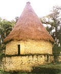 Inside 420 homes built on a circular format each with conic shaped straw thatched roofs and richly decorated with geometrical motifs on limestone.